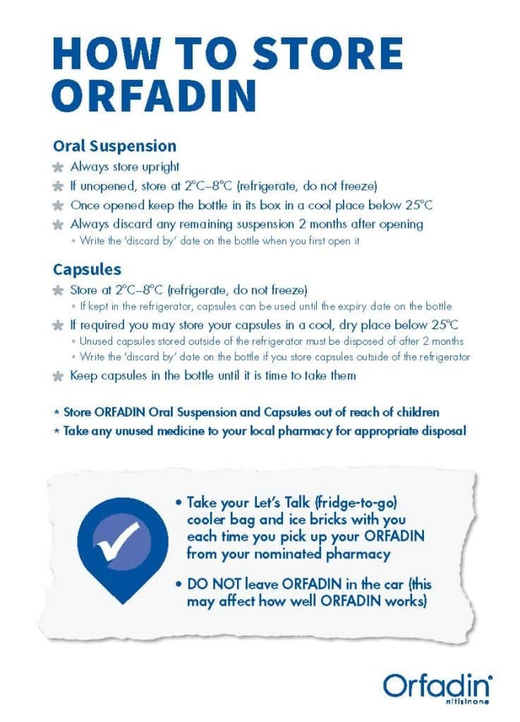 If you have any questions about treatment with ORFADIN or your condition please contact your healthcare professional(s).